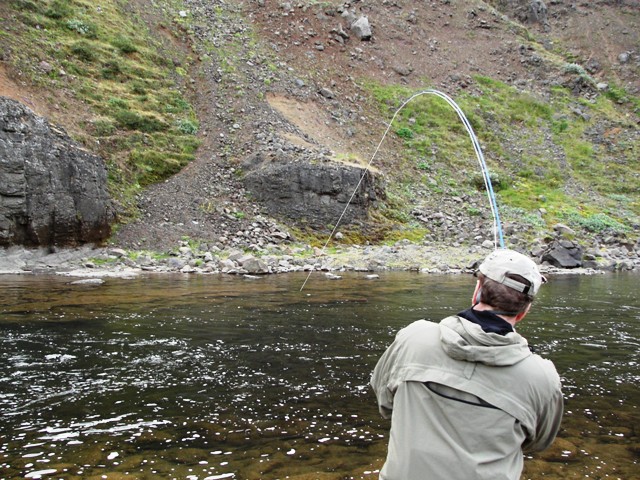 Um leið og rigndi fór fiskur að huga sér til hreyfings og þá varð fjör á svæði I-II í Stóru Laxá. Pierre Affre og félagar lentu ...